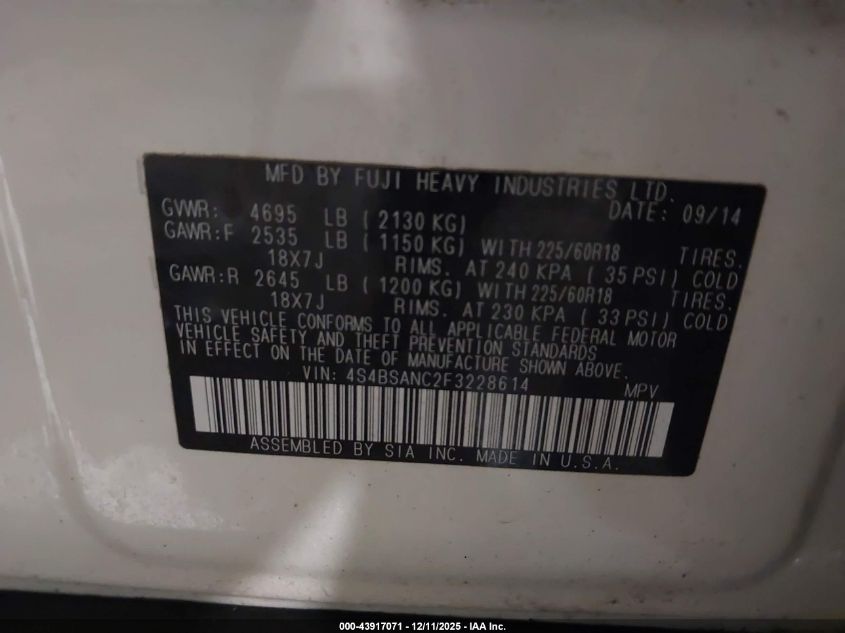 2015 SUBARU OUTBACK 2.5I LIMITED