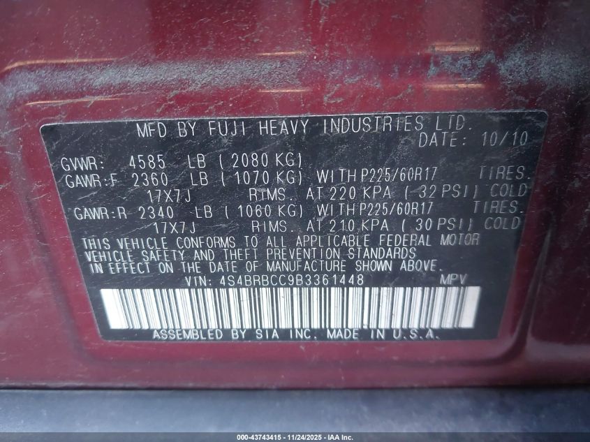 2011 SUBARU OUTBACK 2.5I LIMITED