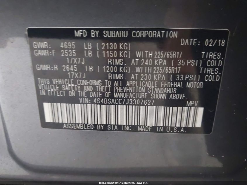 2018 SUBARU OUTBACK 2.5I PREMIUM