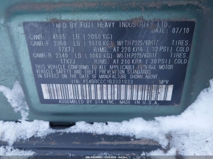 2011 SUBARU OUTBACK 2.5I LIMITED