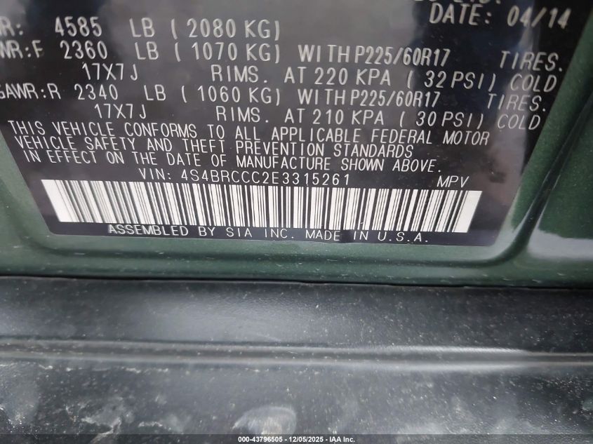 2014 SUBARU OUTBACK 2.5I LIMITED