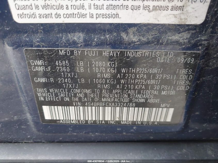 2010 SUBARU OUTBACK 3.6R LIMITED