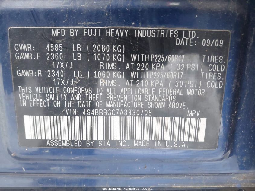 2010 SUBARU OUTBACK 3.6R LIMITED