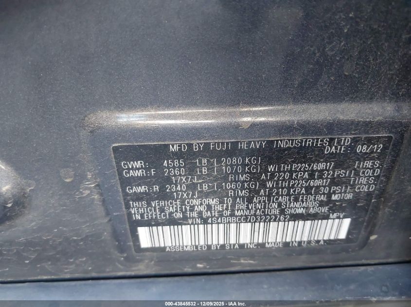 Цвет ЧерныйЦилиндры 4Привод Полный приводVIN 4S4BRBCC7D3222762Состояние Заводится и едет (проверено)Повреждения По бокам AutoRIA