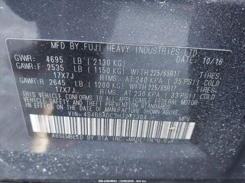 2017 SUBARU OUTBACK 2.5I PREMIUM