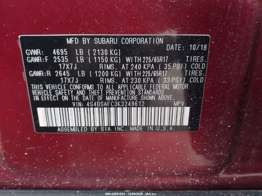 2019 SUBARU OUTBACK 2.5I PREMIUM