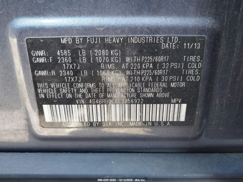 2014 SUBARU OUTBACK 2.5I LIMITED