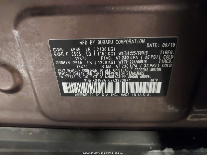 2019 SUBARU OUTBACK TOURING