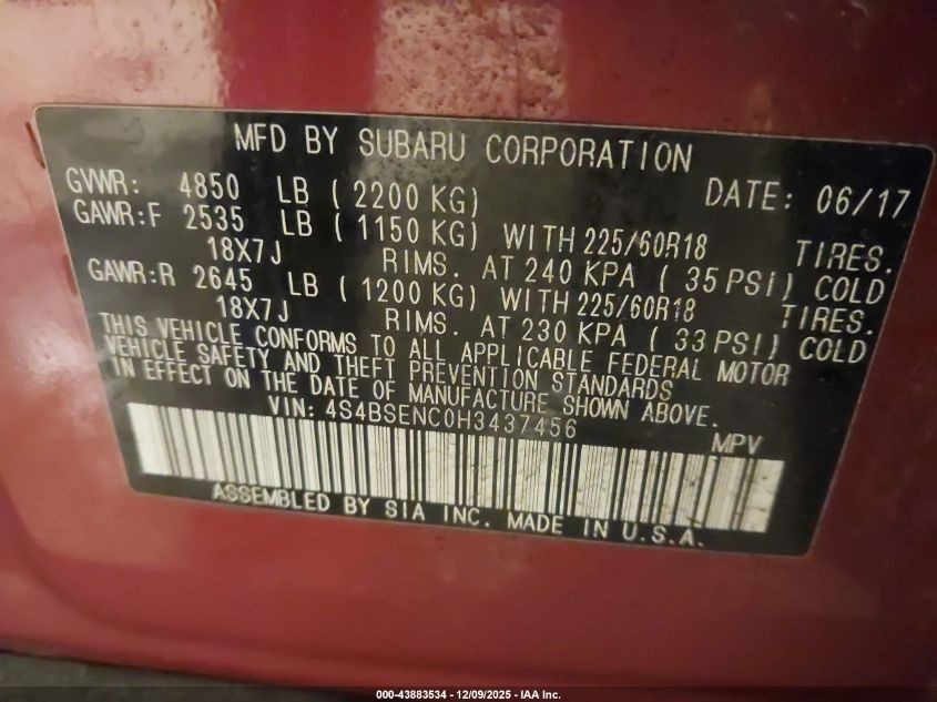 2017 SUBARU OUTBACK 2017 року Бензин, 3.6, Полный привод, vin - 4S4BSENC0H3437456 из США