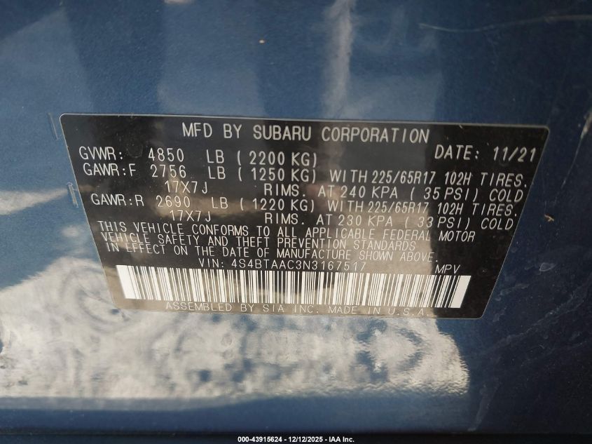 2022 SUBARU OUTBACK PREMIUM