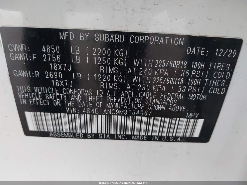 2021 SUBARU OUTBACK 2021 року Бензин, 2.5, Полный привод, vin - 4S4BTANC9M3154067 из США