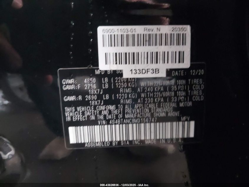 2021 SUBARU OUTBACK 2021 року Бензин, 2.5, Полный привод, vin - 4S4BTANC8M3156747 из США