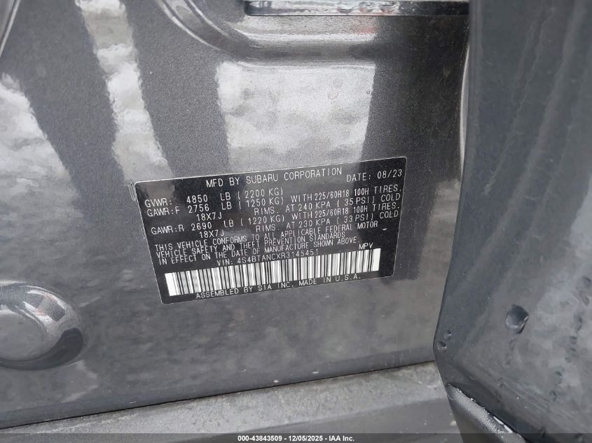 2024 SUBARU OUTBACK 2024 року Бензин, 2.5, Полный привод, vin - 4S4BTANCXR3145451 из США