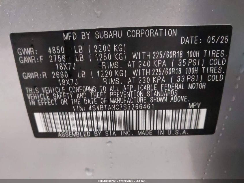 2025 SUBARU OUTBACK 2025 року Бензин, 2.5, Полный привод, vin - 4S4BTANC7S3266461 из США