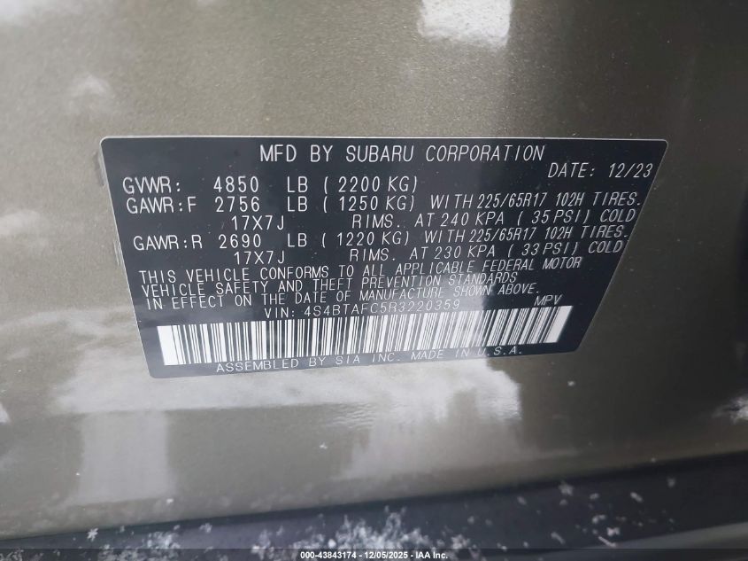 2024 SUBARU OUTBACK 2024 року Бензин, 2.5, Полный привод, vin - 4S4BTAFC5R3220359 из США