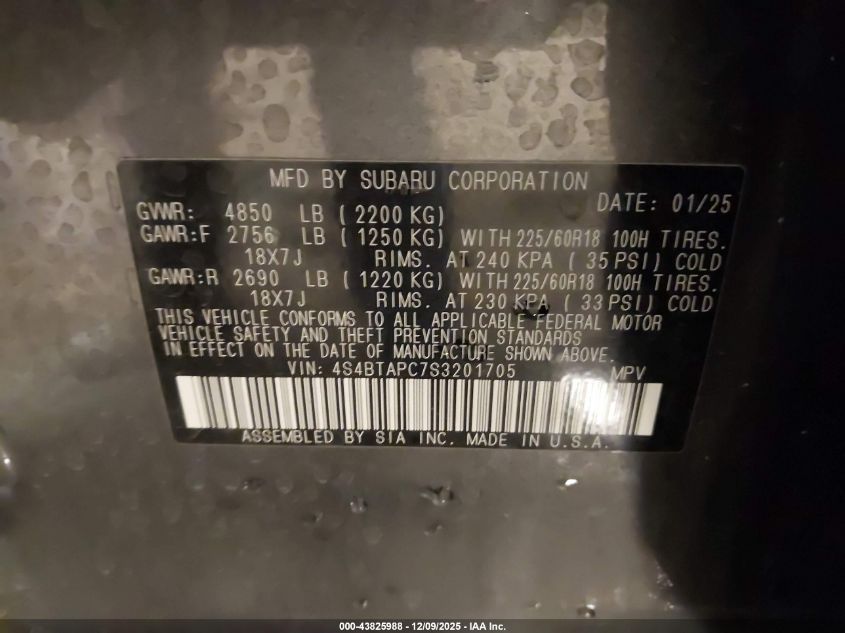 2025 SUBARU OUTBACK 2025 року Бензин, 2.5, Полный привод, vin - 4S4BTAPC7S3201705 из США