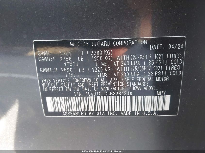 2024 SUBARU OUTBACK 2024 року Бензин, 2.4, Полный привод, vin - 4S4BTGUD5R3281340 из США