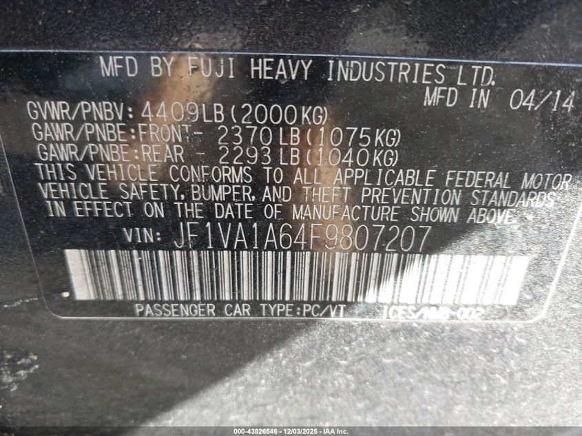2015 SUBARU WRX 2015 року Бензин, 2.0, Полный привод, vin - JF1VA1A64F9807207 из США