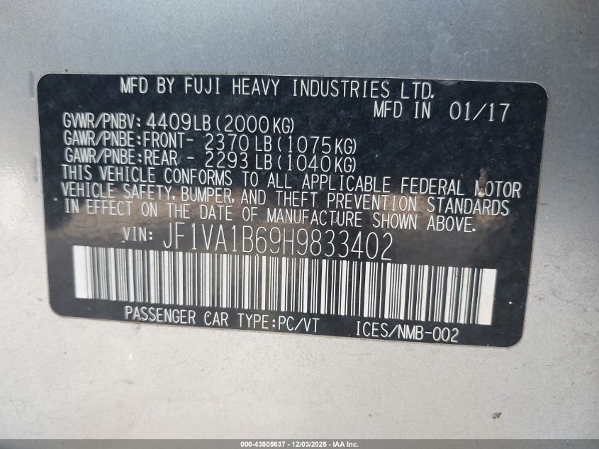 2017 SUBARU WRX 2017 року Бензин, 2.0, Полный привод, vin - JF1VA1B69H9833402 из США