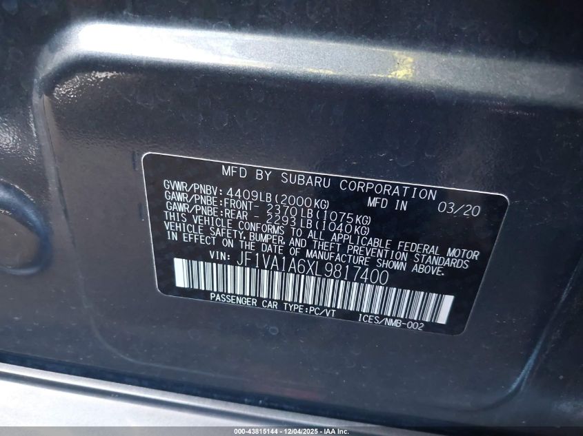 2020 SUBARU WRX STI
