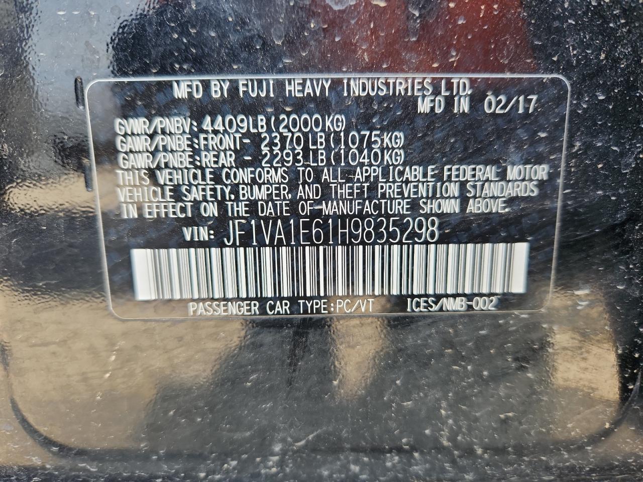2017 SUBARU WRX 2017 року Бензин, 2.0, Полный привод, vin - JF1VA1E61H9835298 из США