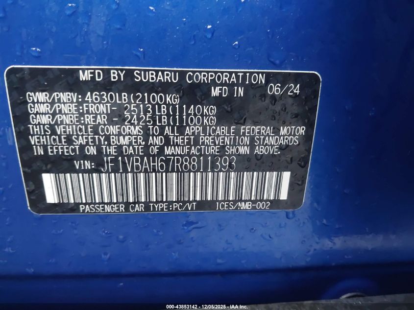 2024 SUBARU WRX 2024 року Бензин, 2.4, Полный привод, vin - JF1VBAH67R8811393 из США