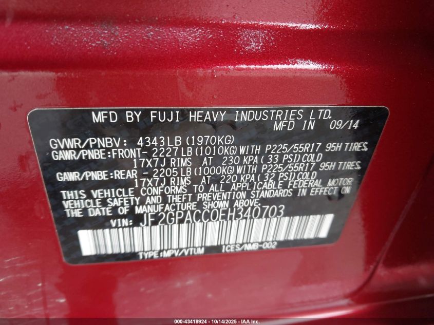 2014 SUBARU XV 2014 року Бензин, 2.0, Полный привод, vin - JF2GPACC0EH340703 из США