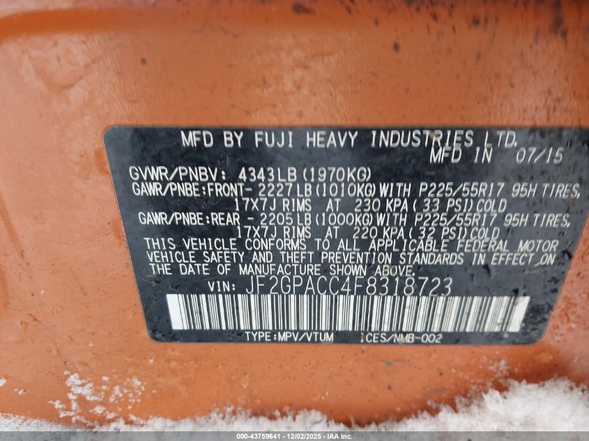 2015 SUBARU XV 2015 року Бензин, 2.0, Полный привод, vin - JF2GPACC4F8318723 из США