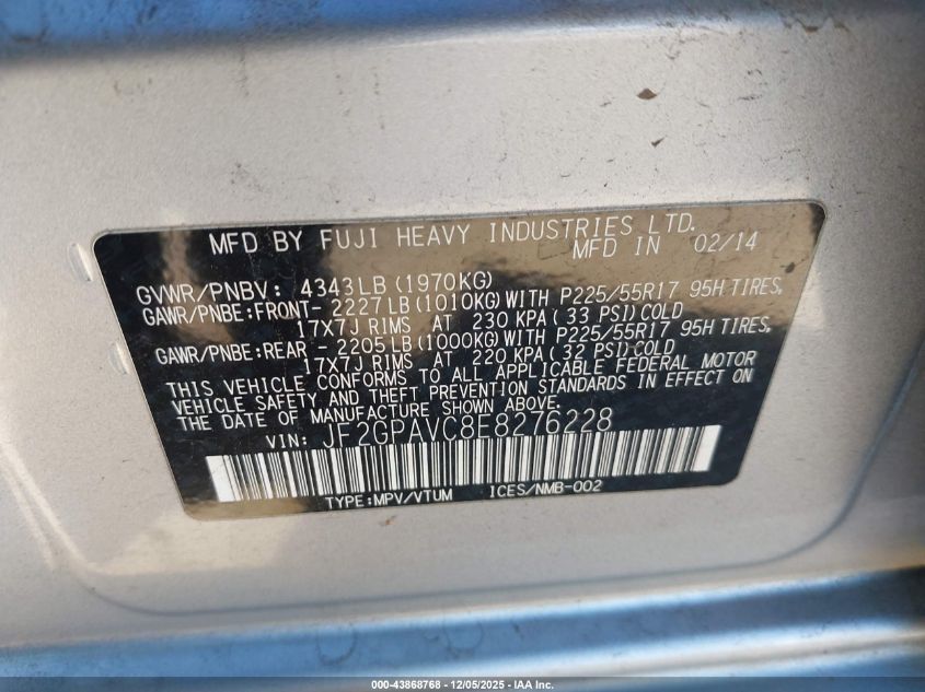 2014 SUBARU XV 2014 року Бензин, 2.0, Полный привод, vin - JF2GPAVC8E8276228 из США
