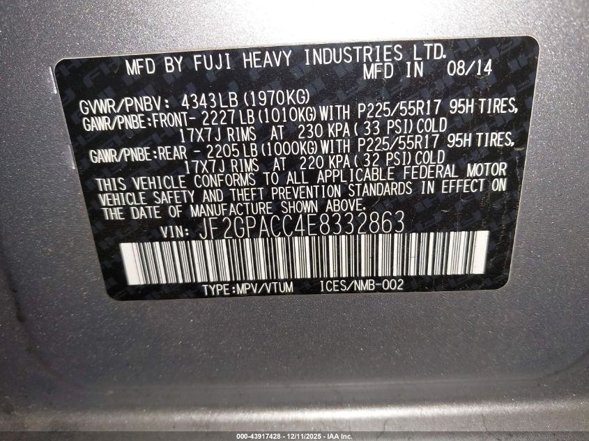 Цвет Цилиндры 4Привод Полный приводVIN JF2GPACC4E8332863Состояние НеизвестноПовреждения Неизвестно AutoRIA