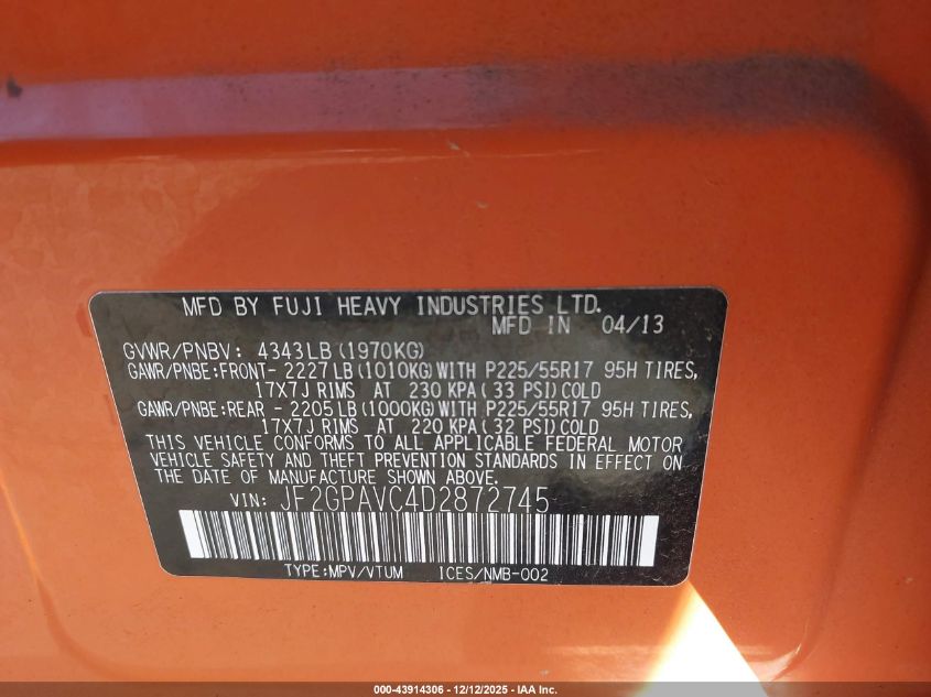 2013 SUBARU XV 2013 року Бензин, 2.0, Полный привод, vin - JF2GPAVC4D2872745 из США