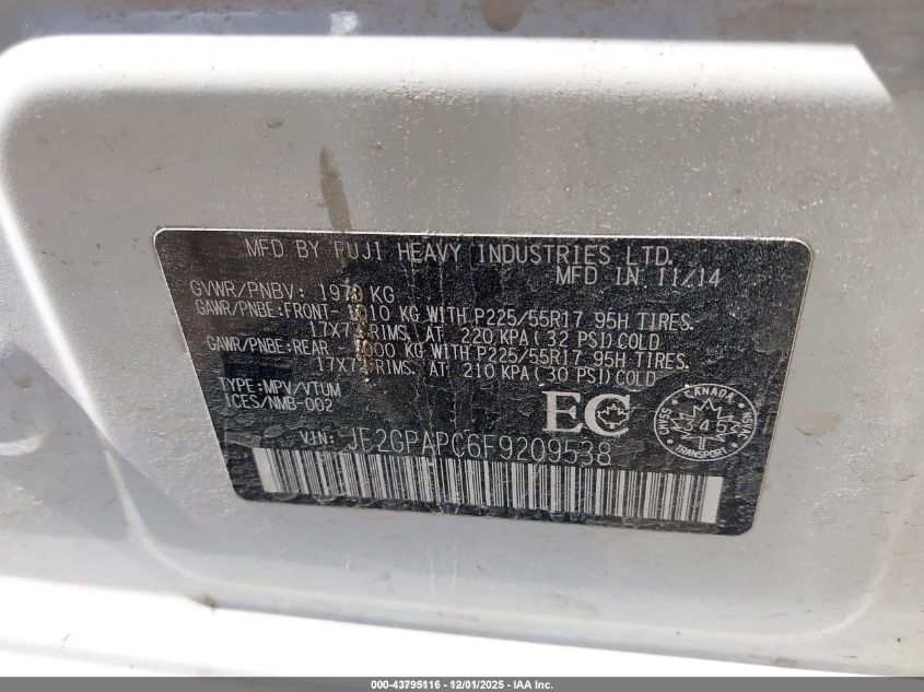 2015 SUBARU XV 2015 року Бензин, 2.0, Полный привод, vin - JF2GPAPC6F9209538 из США