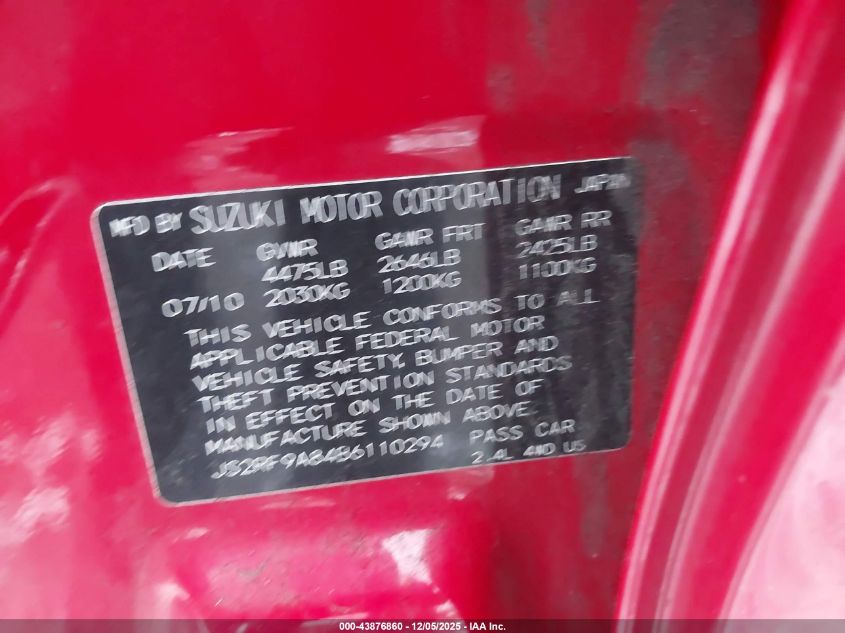2011 SUZUKI KIZASHI 2011 року Бензин, 2.4, Полный привод, vin - JS2RF9A84B6110294 из США