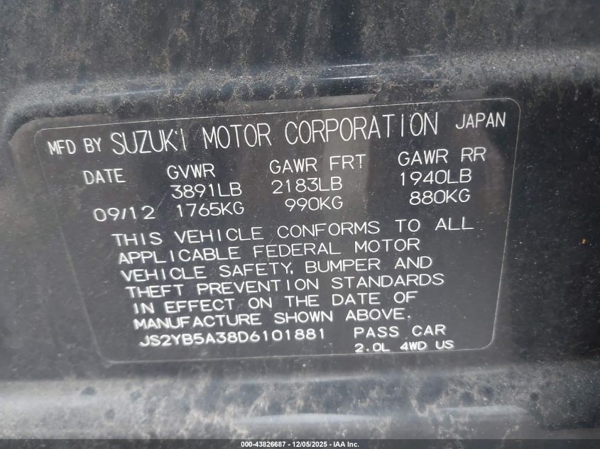 2013 SUZUKI SX4 2013 року Бензин, 2.0, Полный привод, vin - JS2YB5A38D6101881 из США