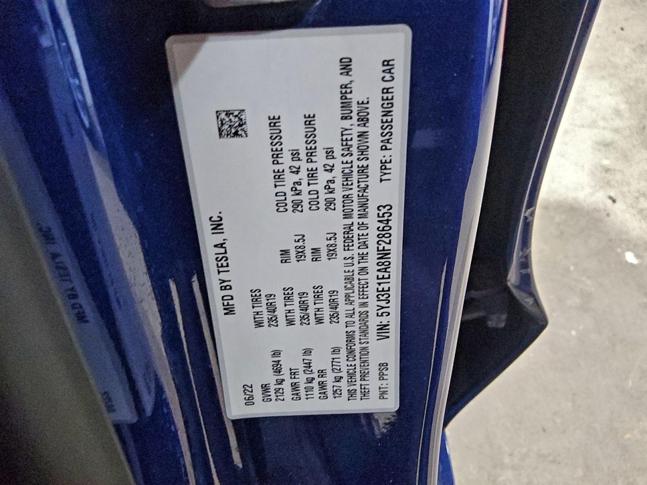 2022 TESLA MODEL 3 2022 року Электрический, , Задний привод, vin - 5YJ3E1EA8NF286453 из США