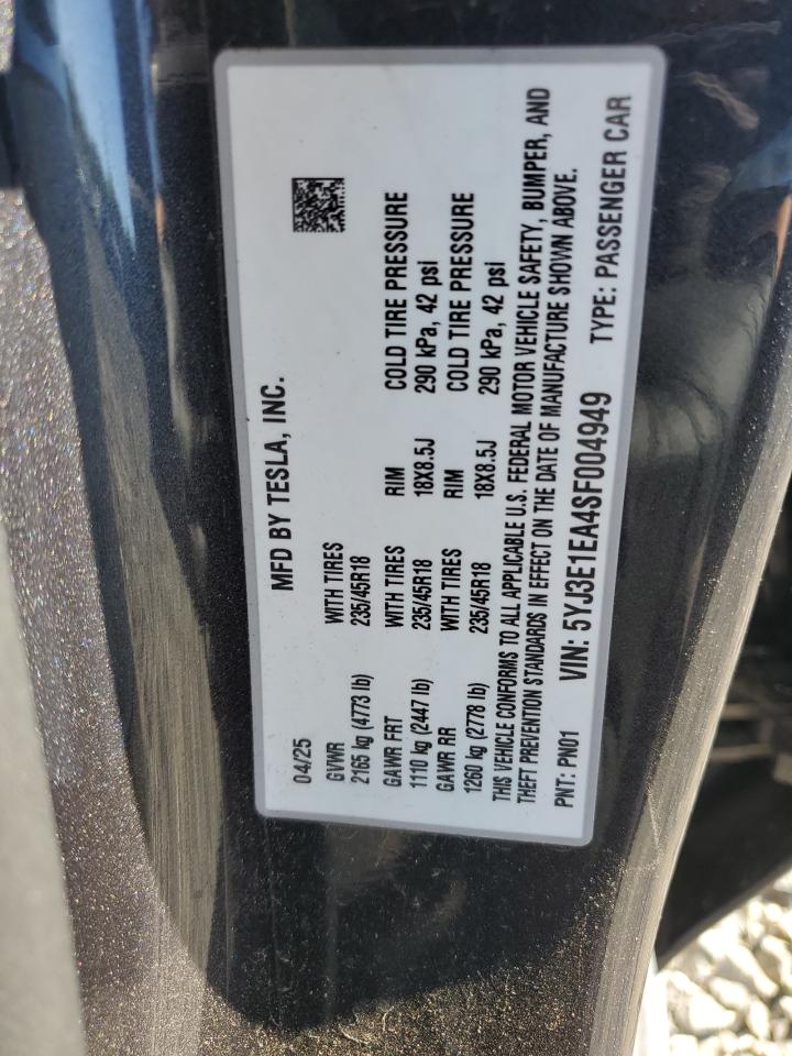 2025 TESLA MODEL 3 2025 року Электрический, , Задний привод, vin - 5YJ3E1EA4SF004949 из США
