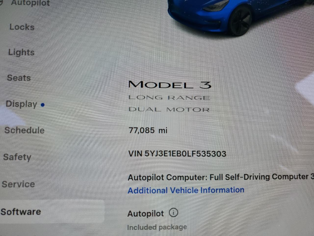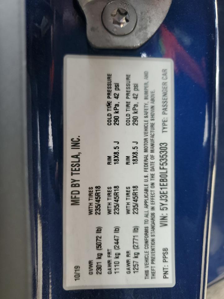 2020 TESLA MODEL 3 2020 року Электрический, , Полный привод, vin - 5YJ3E1EB0LF535303 из США