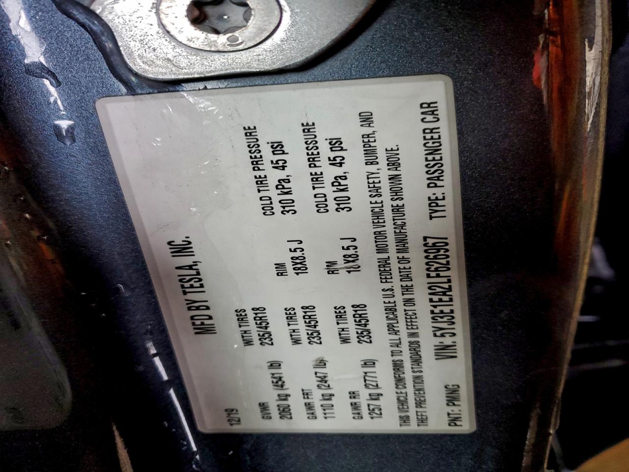 2020 TESLA MODEL 3 2020 року Электрический, , Задний привод, vin - 5YJ3E1EA2LF626967 из США
