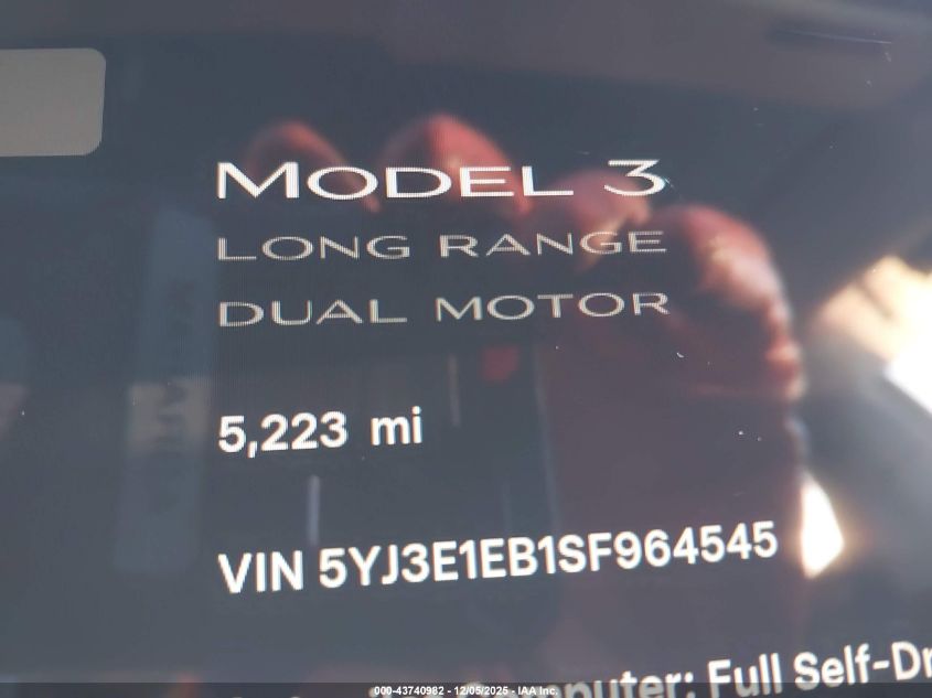 2025 TESLA MODEL 3 2025 року Электрический, U, Полный привод, vin - 5YJ3E1EB1SF964545 из США