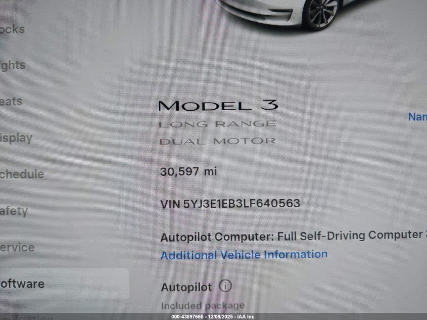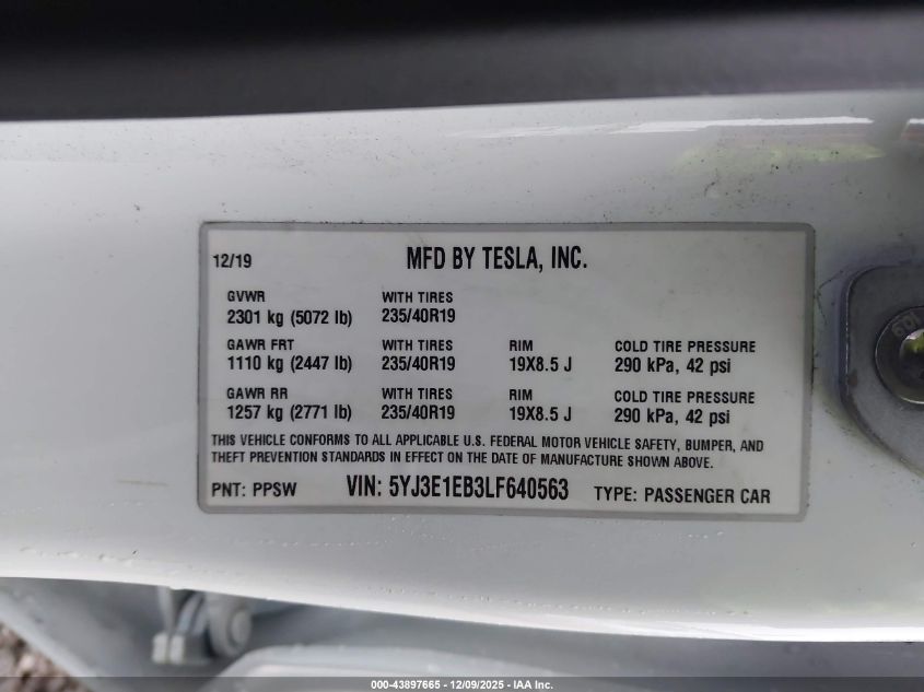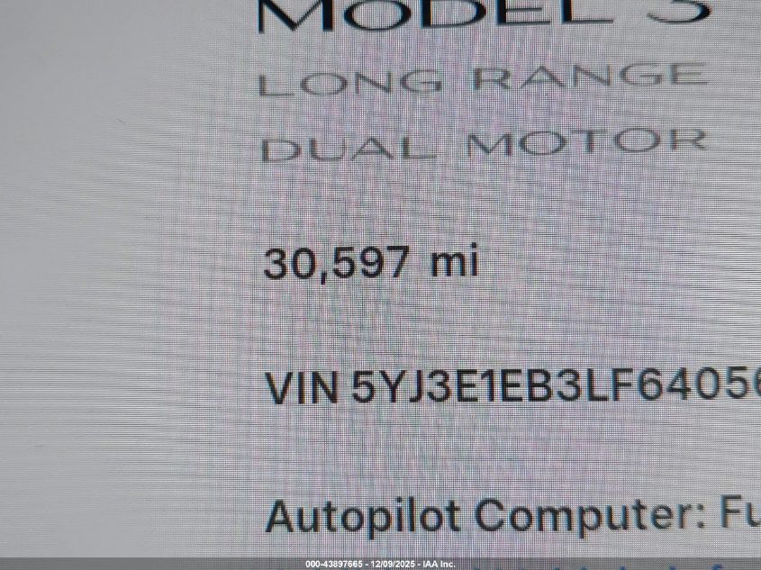 2020 TESLA MODEL 3 2020 року Электрический, U, Полный привод, vin - 5YJ3E1EB3LF640563 из США