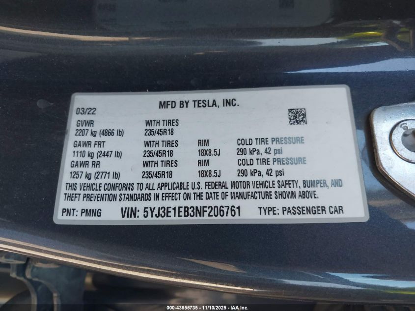 2022 TESLA MODEL 3
