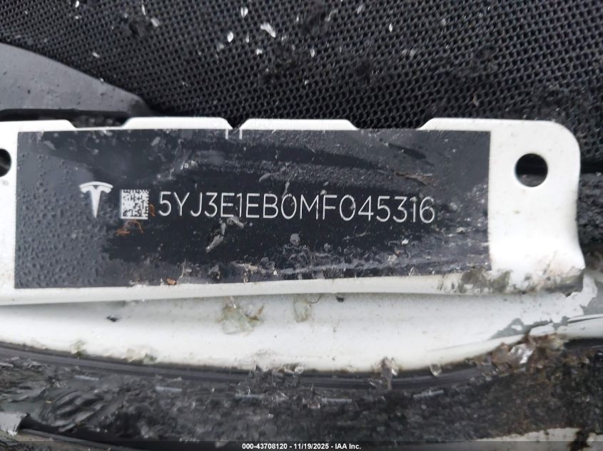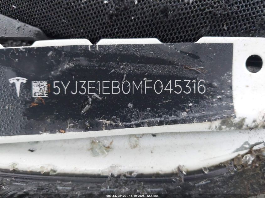 2021 TESLA MODEL 3 2021 року Электрический, U, Полный привод, vin - 5YJ3E1EB0MF045316 из США