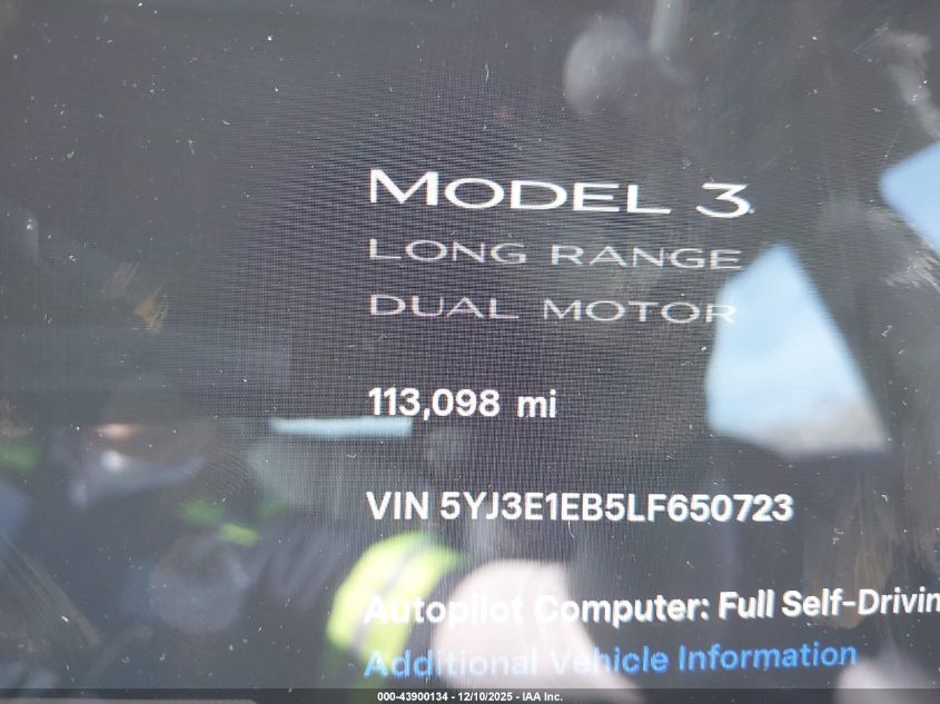 2020 TESLA MODEL 3 2020 року Электрический, U, Полный привод, vin - 5YJ3E1EB5LF650723 из США