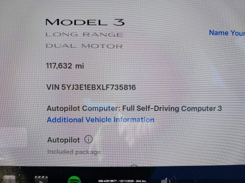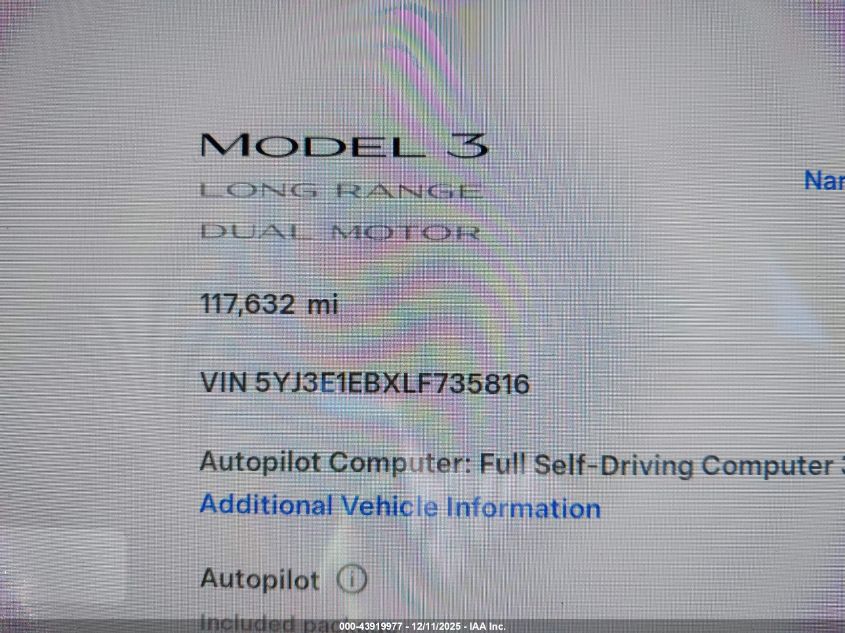 2020 TESLA MODEL 3 2020 року Электрический, U, Полный привод, vin - 5YJ3E1EBXLF735816 из США