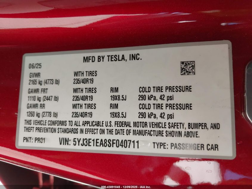 2025 TESLA MODEL 3