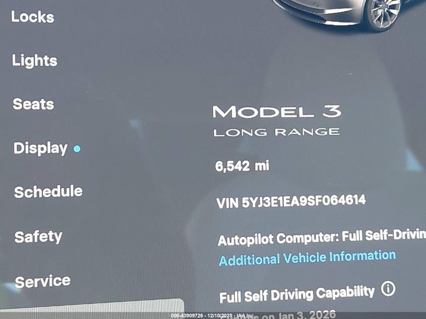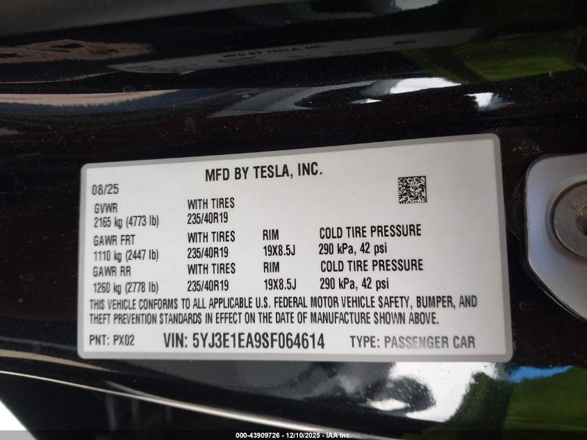 2025 TESLA MODEL 3 2025 року Электрический, U, Задний привод, vin - 5YJ3E1EA9SF064614 из США