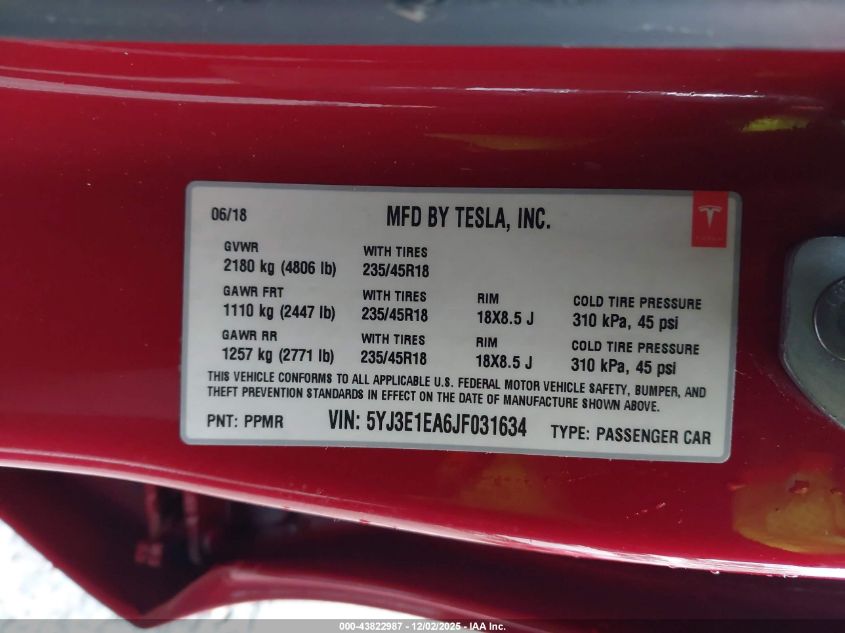 2018 TESLA MODEL 3