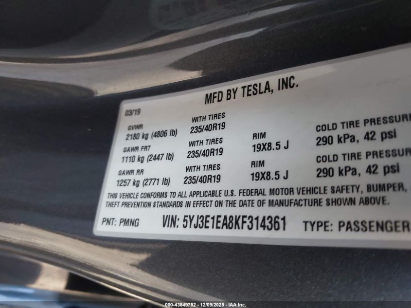 2019 TESLA MODEL 3