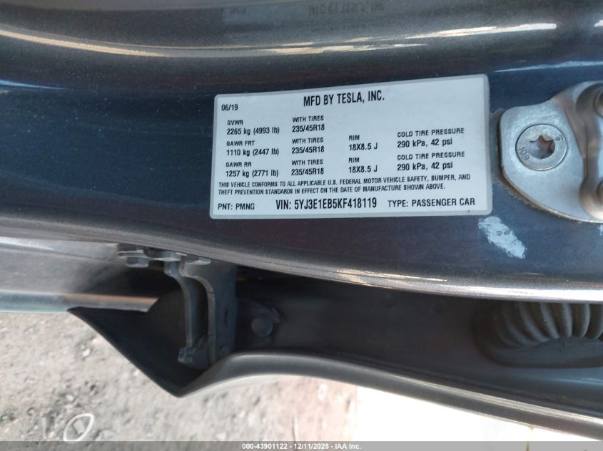 2019 TESLA MODEL 3 2019 року Электрический, U, Полный привод, vin - 5YJ3E1EB5KF418119 из США