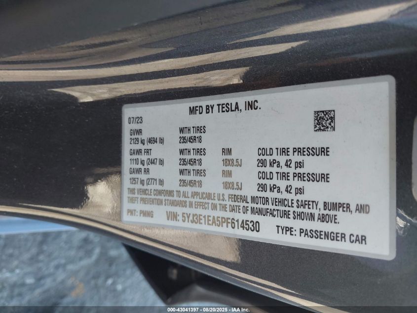 2023 TESLA MODEL 3 2023 року Электрический, U, Задний привод, vin - 5YJ3E1EA5PF614530 из США